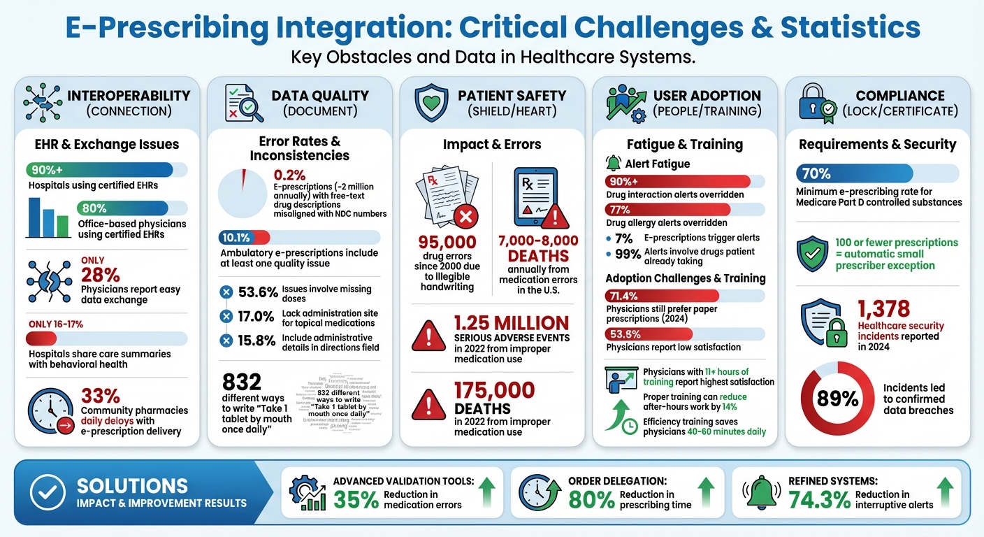 Integrating e-prescribing into healthcare systems is no small task. The hurdles are substantial: interoperability gaps that can leave providers without critical medication histories, workflow disruptions that slow down care delivery, data quality issues that risk preventable errors, regulatory requirements that require constant vigilance, and user adoption challenges that can undermine even the most advanced systems.